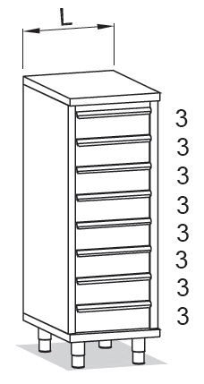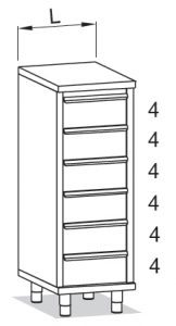 | Armario con cajones con bloqueo centralizado | Dimensiones LxFxH (mm) | Compuesto por | |