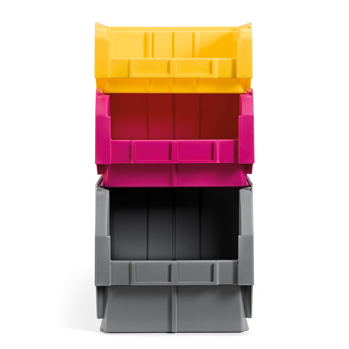 Las cajas de plástico con frontal abierto Compat se suministran listas para su uso.
