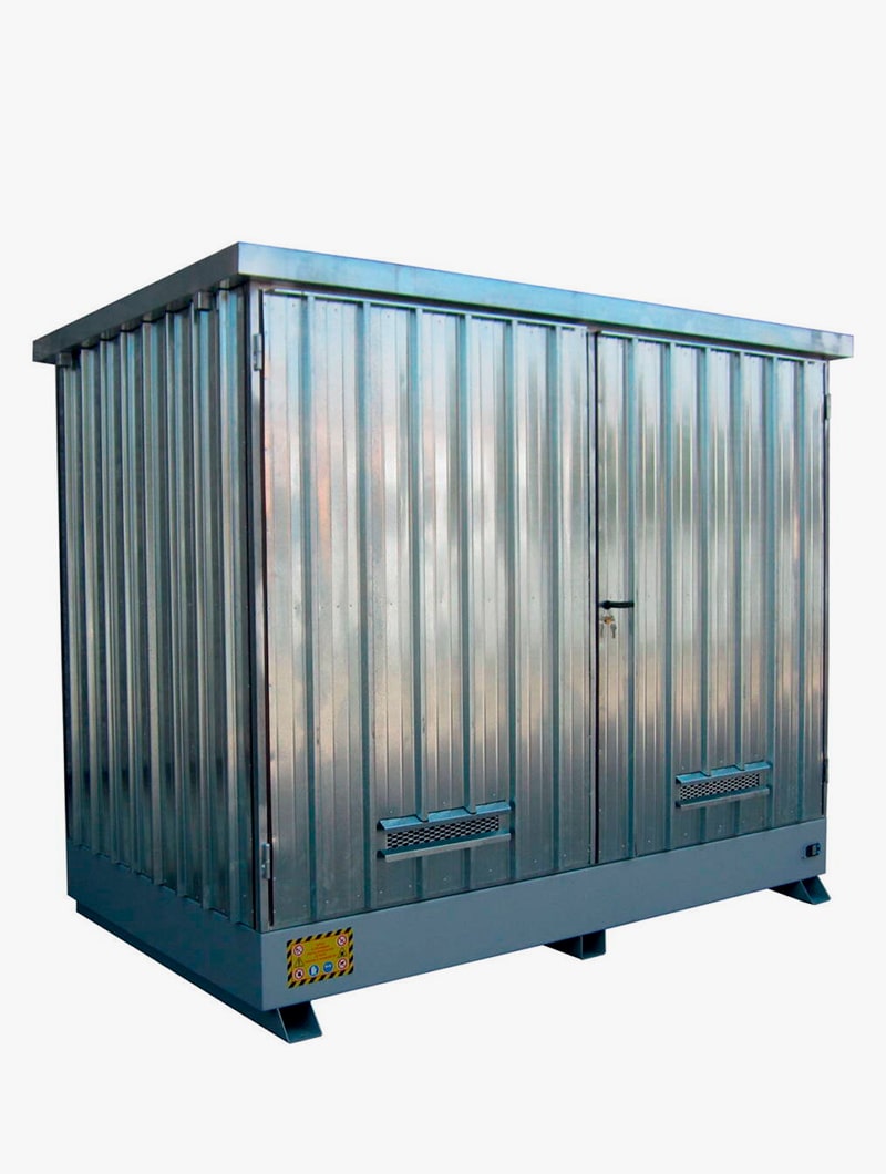 Cuentan con cubeto de retención de 1000 litros integrado en la base de la estructura del módulo. Opcionalmente se le puede poner un revestimiento interior antiácido o hacer todo el cubeto en acero inoxidable que permite el almacenamiento de sustancias corrosivas.