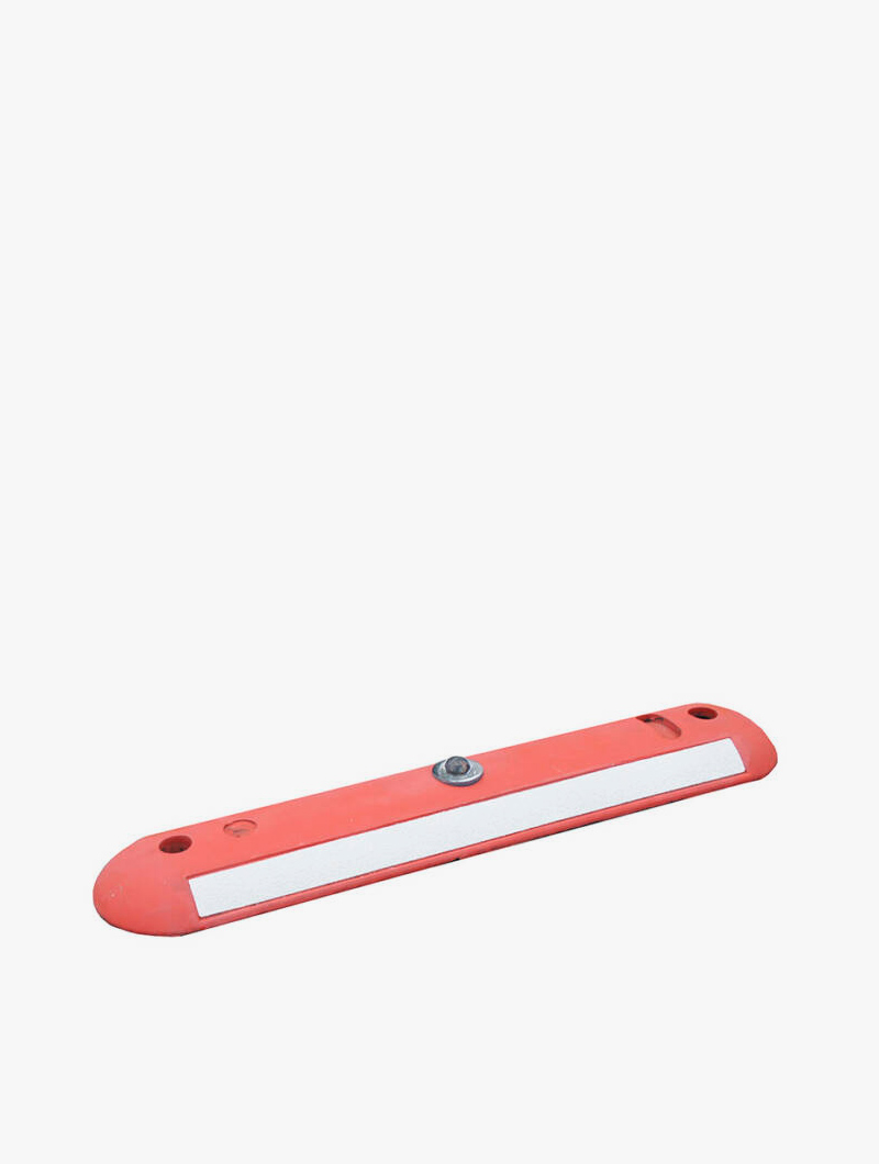 Separador de carriles para delimitar vías reservadas o de emergencias, carril bici o zonas de estacionamiento. Fabricados en caucho virgen vulcanizado, posee 2 bandas reflectoras de color blanco, reflectante clase 2.
