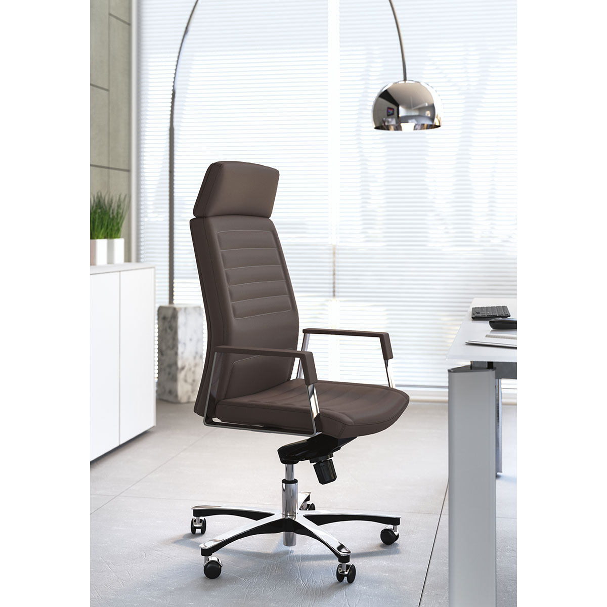 Un clásico en el mundo de las sillas de oficina ejecutivas. Las puntadas del mismo color que el forro, la nueva gama de tejidos y pieles, las dos versiones del apoyabrazos y el nuevo mecanismo lo hacen ideal para satisfacer las diferentes exigencias estilísticas.