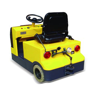 El tractor de remolque eléctrico es un elemento imprescindible en los almacenes en los que se necesite desplazar mercancía pesada en distancias moderadas, por zonas de difícil maniobra o para reducir la fatiga laboral y mejorar la calidad de vida de los trabajadores. Disponen de un sistema eléctrico con baterías incorporadas y el giro se realiza mediante una cremallera de dirección como en cualquier vehículo convencional. Son capaces de trasladar hasta 5 Tn en función del modelo, y disponemos también de un sistema de remolques conectables que conforman un convoy para optimizar los desplazamientos.